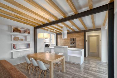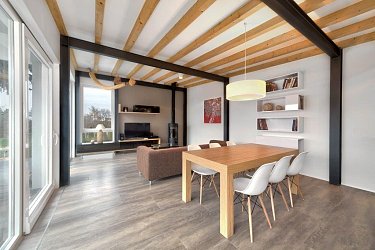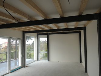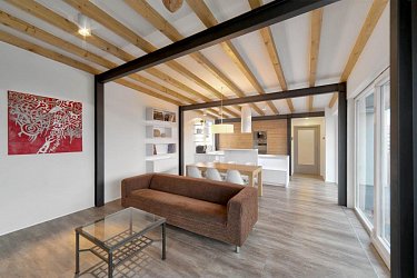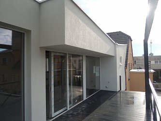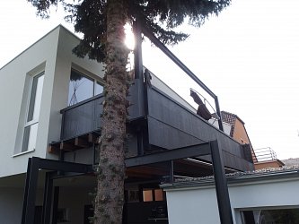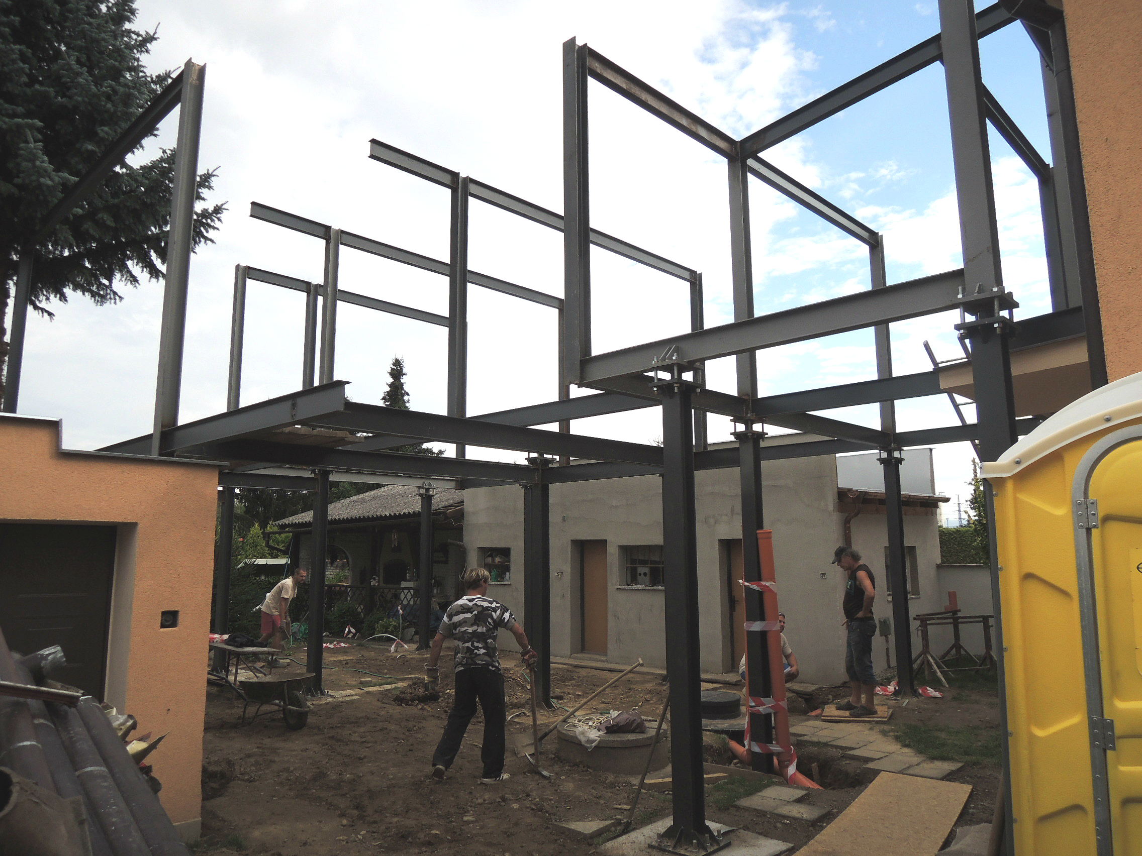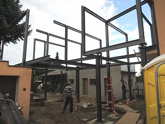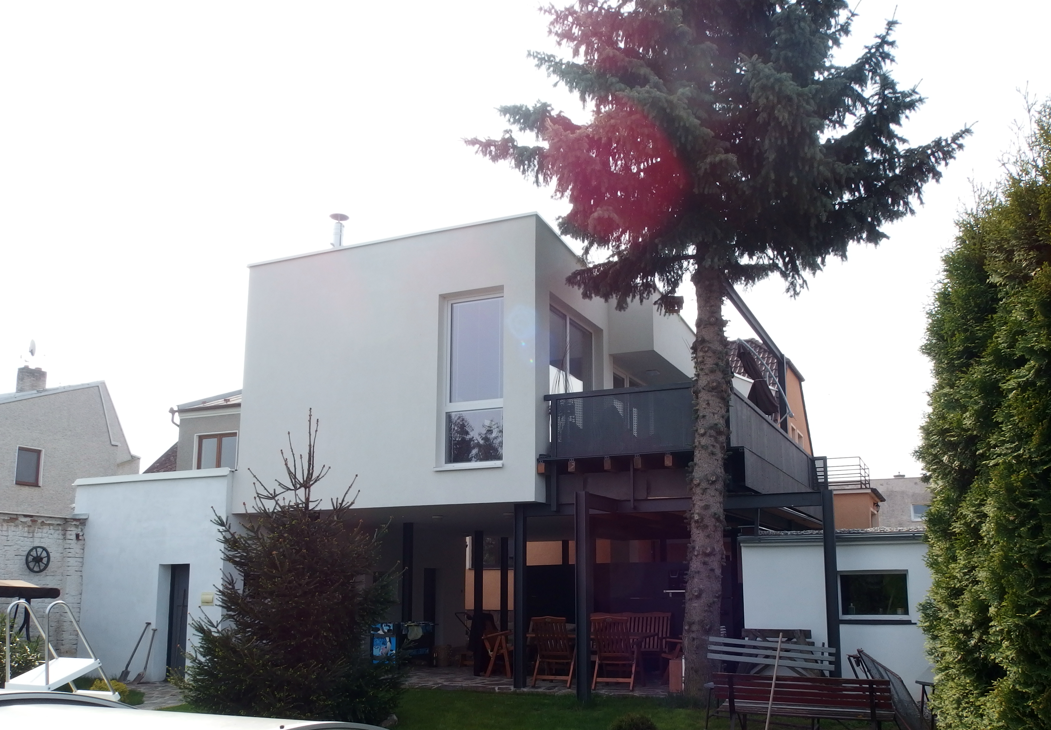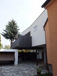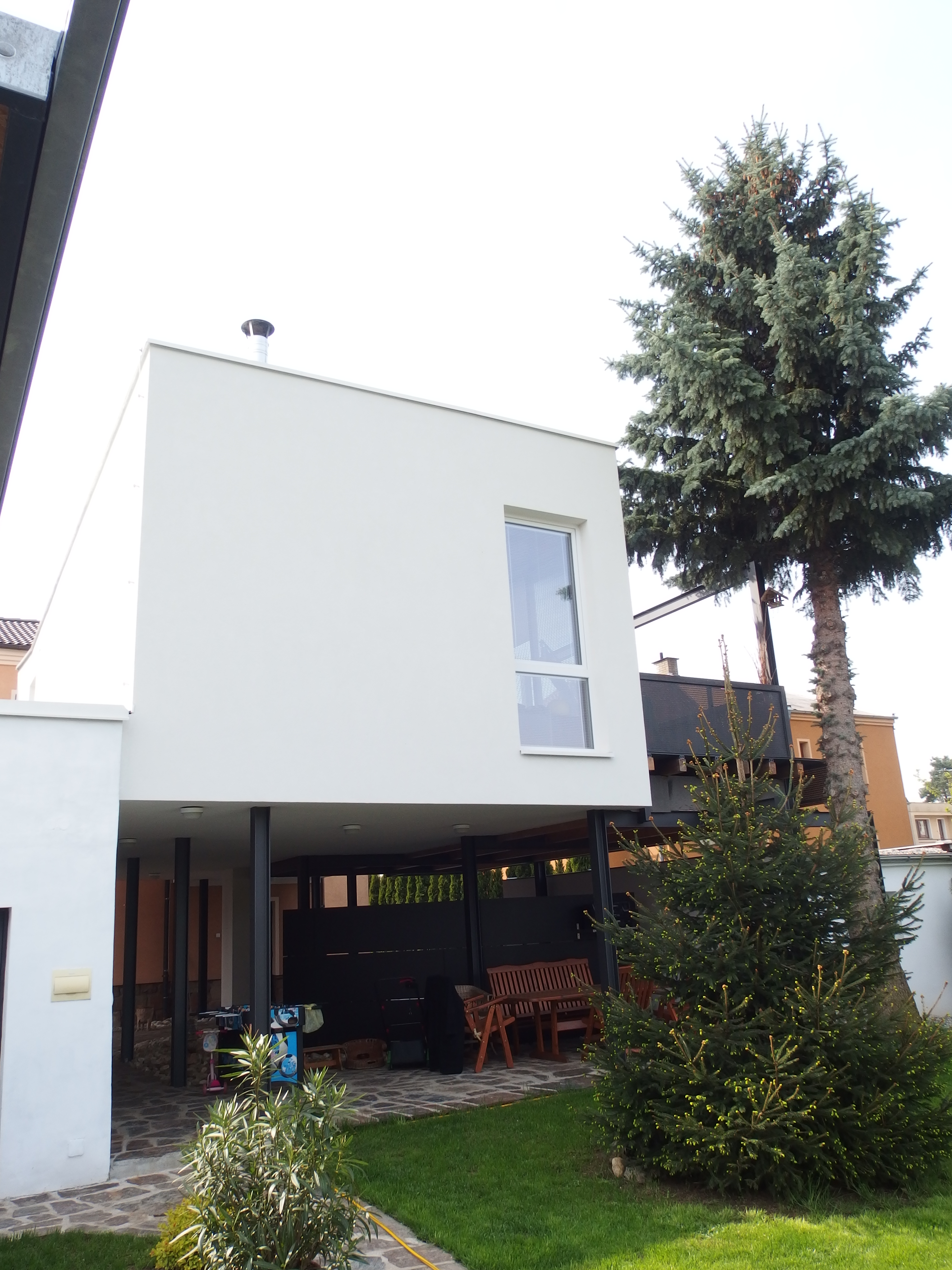 vybudování druhé bytové jednotky ve stávajícím RD formou využití stávajících prostor 2.NP rozšířených o dostavbu mezipatra do dvora objektu; cílem bylo nenarušení urbanisticky a prostorově stabilizované uliční zástavby